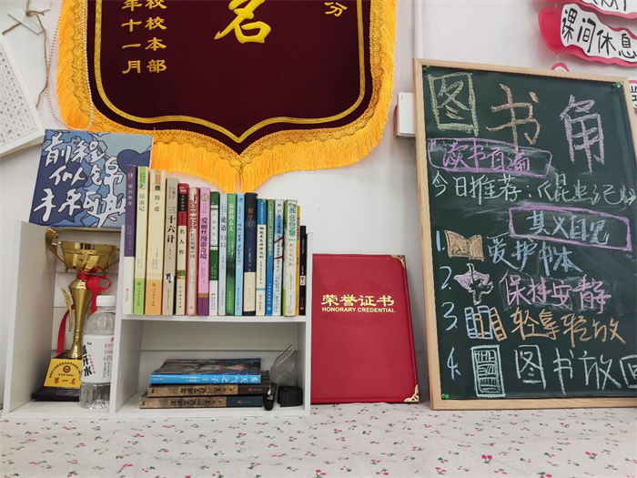 各班級精心打造閱讀空間:創(chuàng)意圖書角:好書漂流,智慧傳遞;讀書名言墻:名家箴言啟迪心靈;主題板報:展示閱讀成果與感悟。