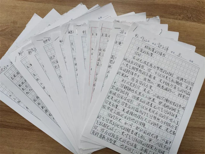 云端敘事、鋼鐵的溫柔、起落架上的夕陽、渦輪轟鳴里的詩歌、航跡云畫下的誓言。同學們以深情文字傾訴對機翼的摯愛,揮毫潑墨間,一封封熾熱情書躍然紙上。