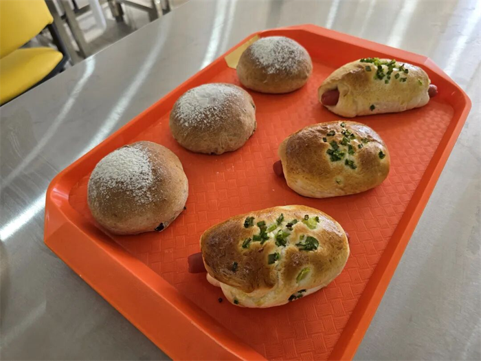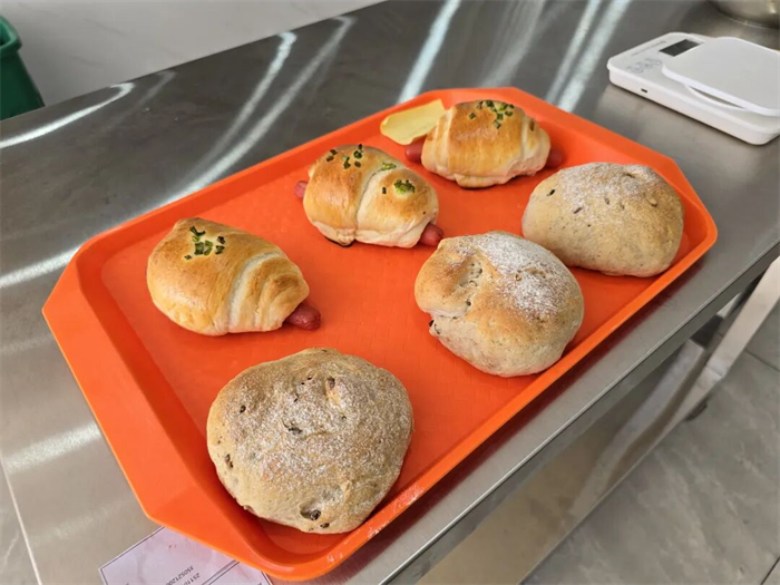 培訓中,專業(yè)教師圍繞面包烘焙全流程,系統(tǒng)講授了面粉種類與特性、酵母作用原理、發(fā)酵環(huán)境控制、烘焙時間把握等核心知識,講解深入淺出、細致到位。教職工們學習熱情高漲,在揉面、發(fā)酵、整形等實操環(huán)節(jié)反復練習、用心揣摩,逐步掌握了面包制作的關鍵技能。從最初的“烘焙小白”到能夠熟練制作多種經典面包,大家的進步有目共睹,也為迎接考核打下堅實基礎。