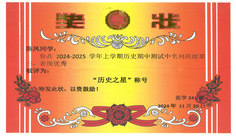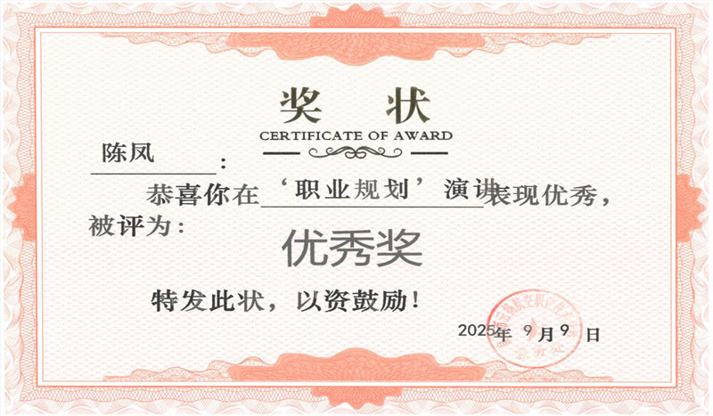 人文賦能,才華橫溢:不僅專業(yè)能力出眾,人文素養(yǎng)更是突出——斬獲“歷史之星”稱號、征文比賽一等獎、職業(yè)規(guī)劃演講大賽一等獎、閱讀活動二等獎,全方位展現(xiàn)青春風采。