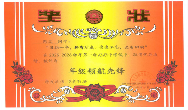 賽場爭鋒,技壓群雄:在2024年泉州市職業(yè)技能競賽中,憑借過硬的專業(yè)能力斬獲“智能飛行器裝調檢修”項目銀牌,讓技能之光閃耀賽場。