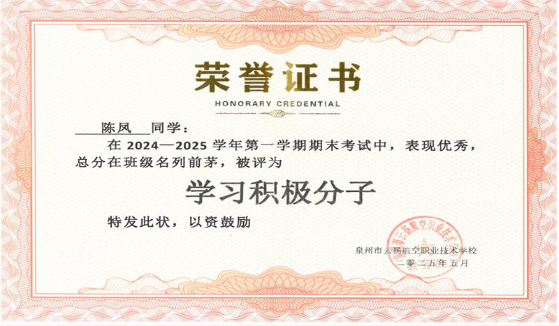 思想淬煉,初心如磐:積極向上,榮獲2024-2025學年“優(yōu)秀共青團員”稱號,以青春之力踐行責任擔當。