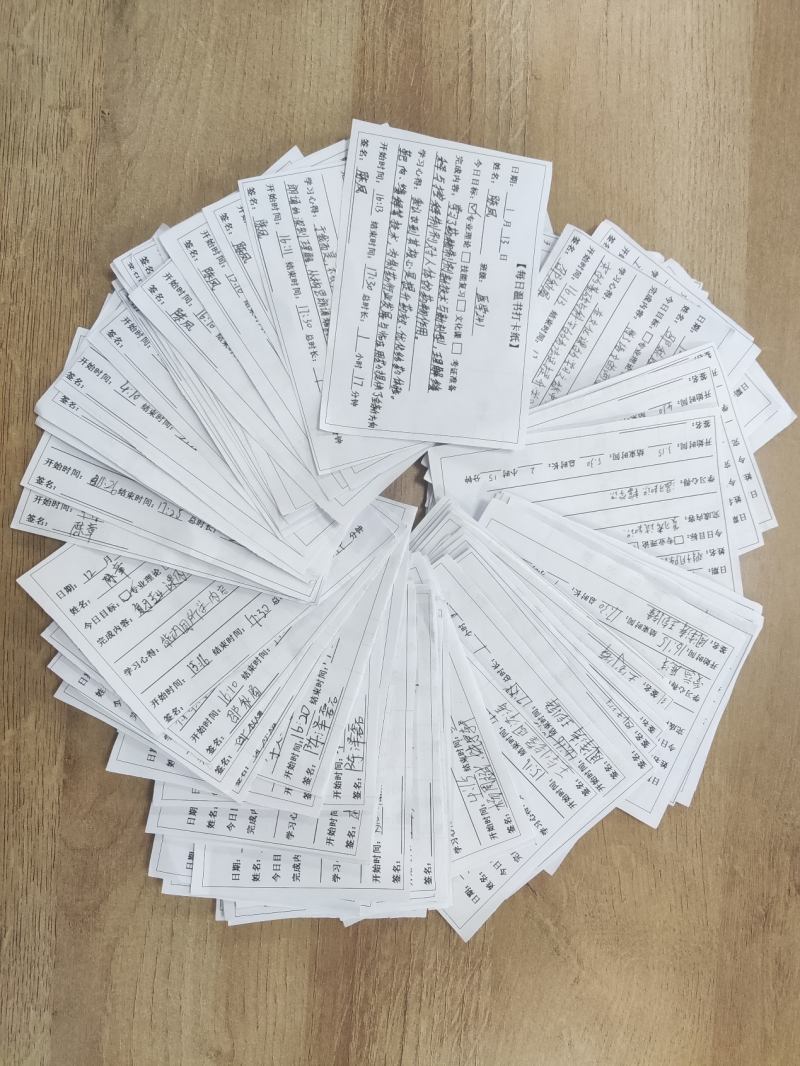 打卡紙上設(shè)置的“心得記錄”欄目,讓每一次突破與反思得以傳遞,實現(xiàn)了“一人心得,眾人受益”的學(xué)習(xí)共享。