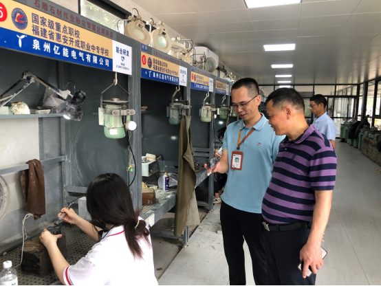在福建省惠安開成職業(yè)中專學(xué)校陳國強(qiáng)副校長及相關(guān)處室負(fù)責(zé)人的熱情接待和陪同下,我校參訪組一行實地參觀了開成中專的海爾物聯(lián)網(wǎng)實訓(xùn)基地、師生技能展示室、華僑大愛精神展示廳、法制教育館、國防教育館、校史紀(jì)念館和黨史教育館。陳國強(qiáng)副校長向參訪組介紹了學(xué)校的基本情況、校園環(huán)境、辦學(xué)理念和文化特色,參訪組認(rèn)真聆聽講解,充分感受文明校園氛圍,對開成中專環(huán)境布局、氛圍布置、特色渲染等方面的用心構(gòu)筑給予了高度贊譽(yù)。