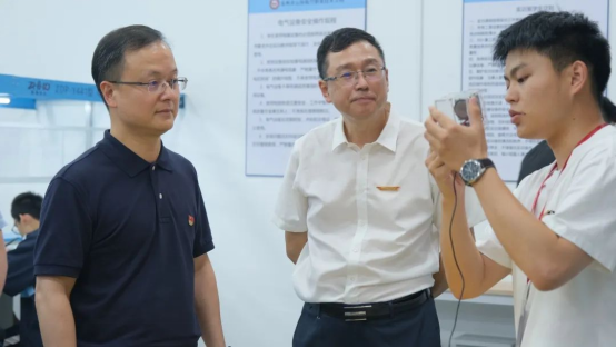 縣委常委、組織部部長洪亞清一行首先深入學校教學綜合樓,參觀了飛機維修、無人機應用技術(shù)、機電一體化等實訓教室,觀摩體驗了飛機模擬器操作演練的技能學習過程。