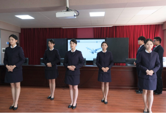 面露淺笑、隊(duì)列齊步、彎腰鞠躬,蹲起坐立……女生優(yōu)雅溫婉、男生紳士有范,每一個(gè)細(xì)致又熟練的動(dòng)作,每一處透露著專業(yè)的細(xì)節(jié),都是航空禮儀隊(duì)日常堅(jiān)持訓(xùn)練所得,是努力所獲的繁花碩果。精彩的表演引起了在場(chǎng)的師生們陣陣的掌聲。