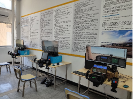自主研制的采用Garmin G1000航電系統(tǒng)的飛行模擬器,采用真實(shí)的飛行控制參數(shù)和飛行器參數(shù),硬件和飛行流程的操作和功能顯示與真實(shí)飛機(jī)完全一至,可實(shí)現(xiàn)真實(shí)的仿真學(xué)習(xí)效果。寬屏顯示器可顯示真實(shí)的機(jī)場、地面景物、航線氣象、飛機(jī)狀態(tài)等方面的信息,與飛行姿態(tài)同步變化來模擬飛機(jī)實(shí)際飛行的視覺和駕駛體驗(yàn)。本設(shè)備可進(jìn)行飛行員地面駕駛模擬飛行培訓(xùn)、航空類專業(yè)認(rèn)知體驗(yàn)類課程學(xué)習(xí)和航空科普體驗(yàn)等等。