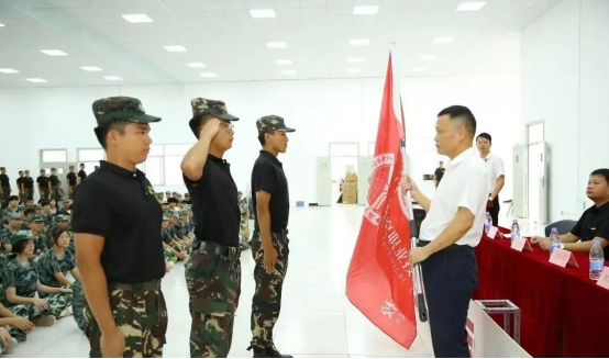 潘向東書記向軍訓(xùn)總教官授旗