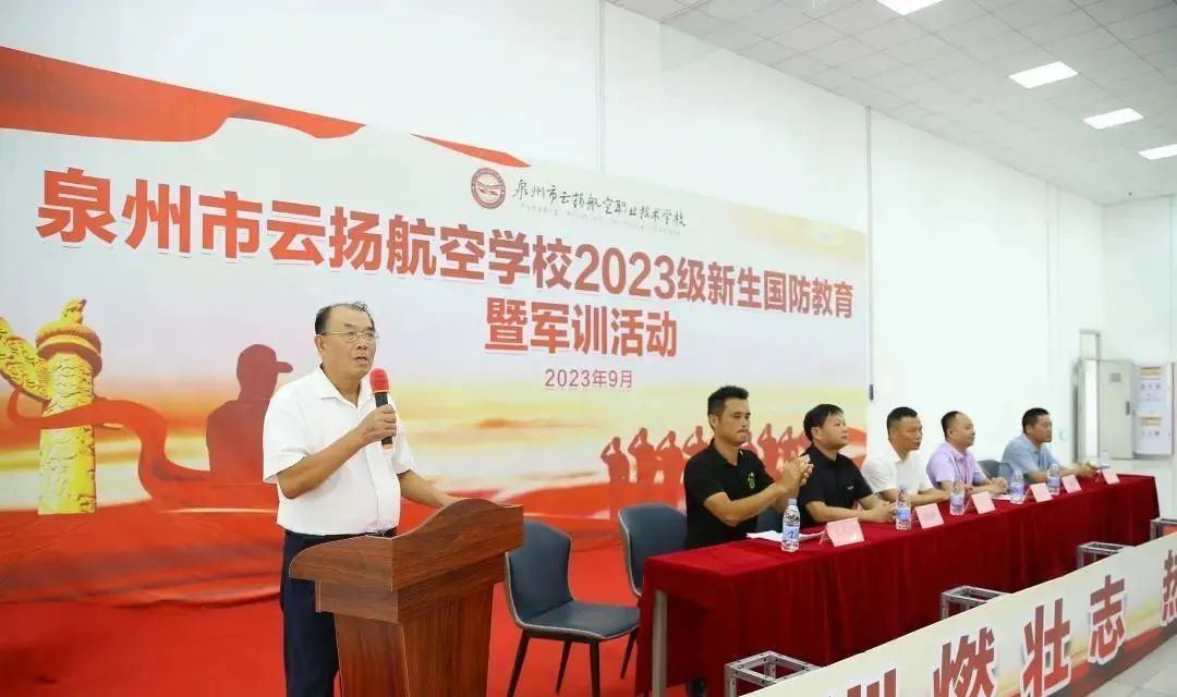 許碧奎副校長宣布泉州市云揚(yáng)航空職業(yè)技術(shù)學(xué)校2023年軍訓(xùn)開營現(xiàn)在開始!